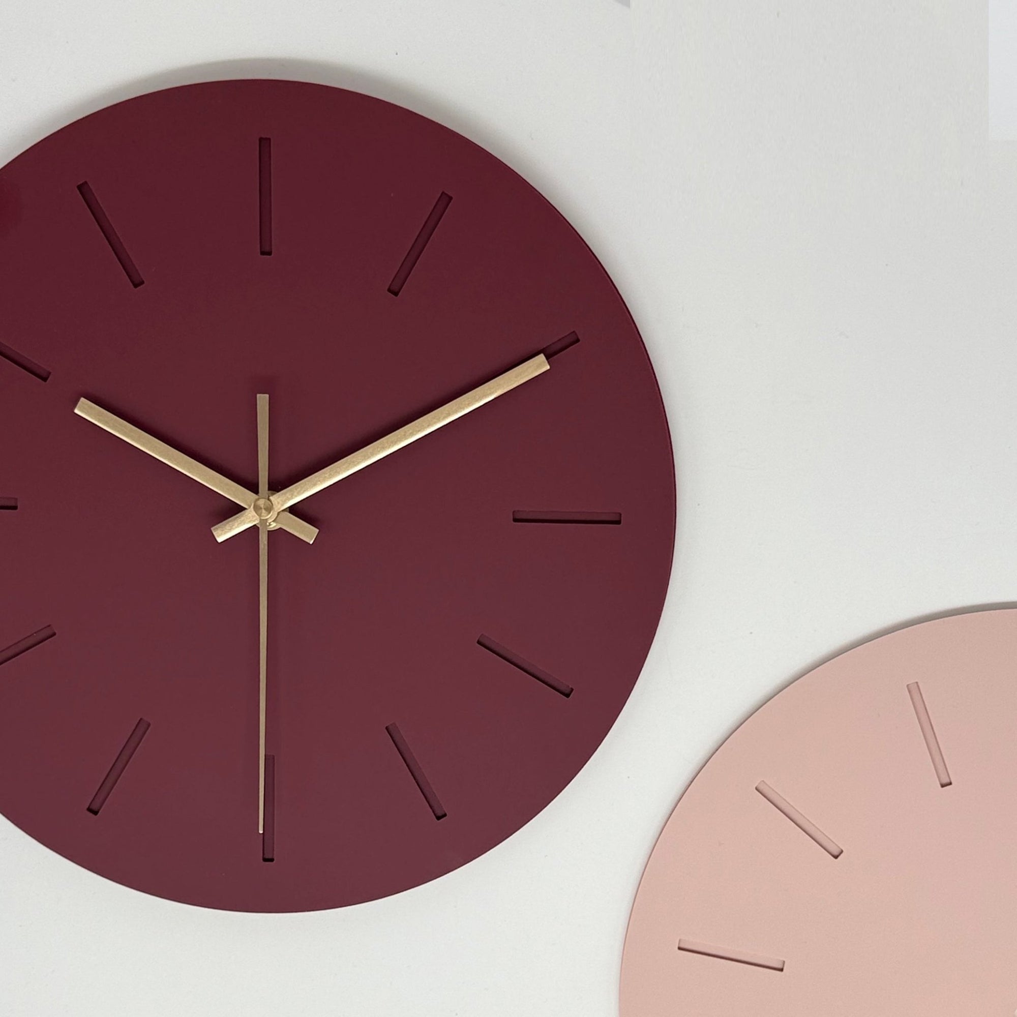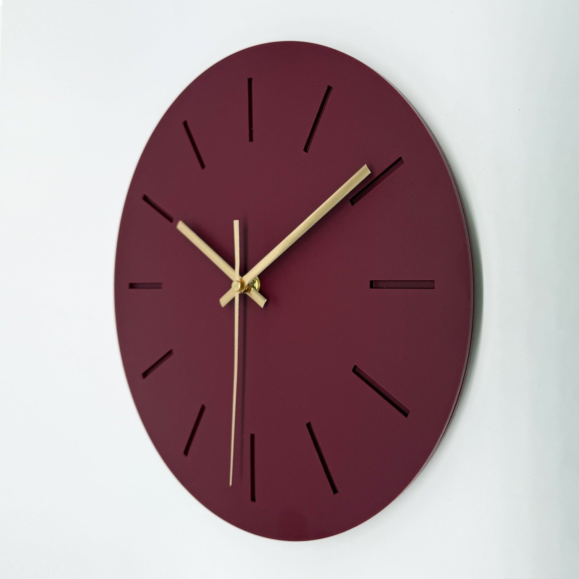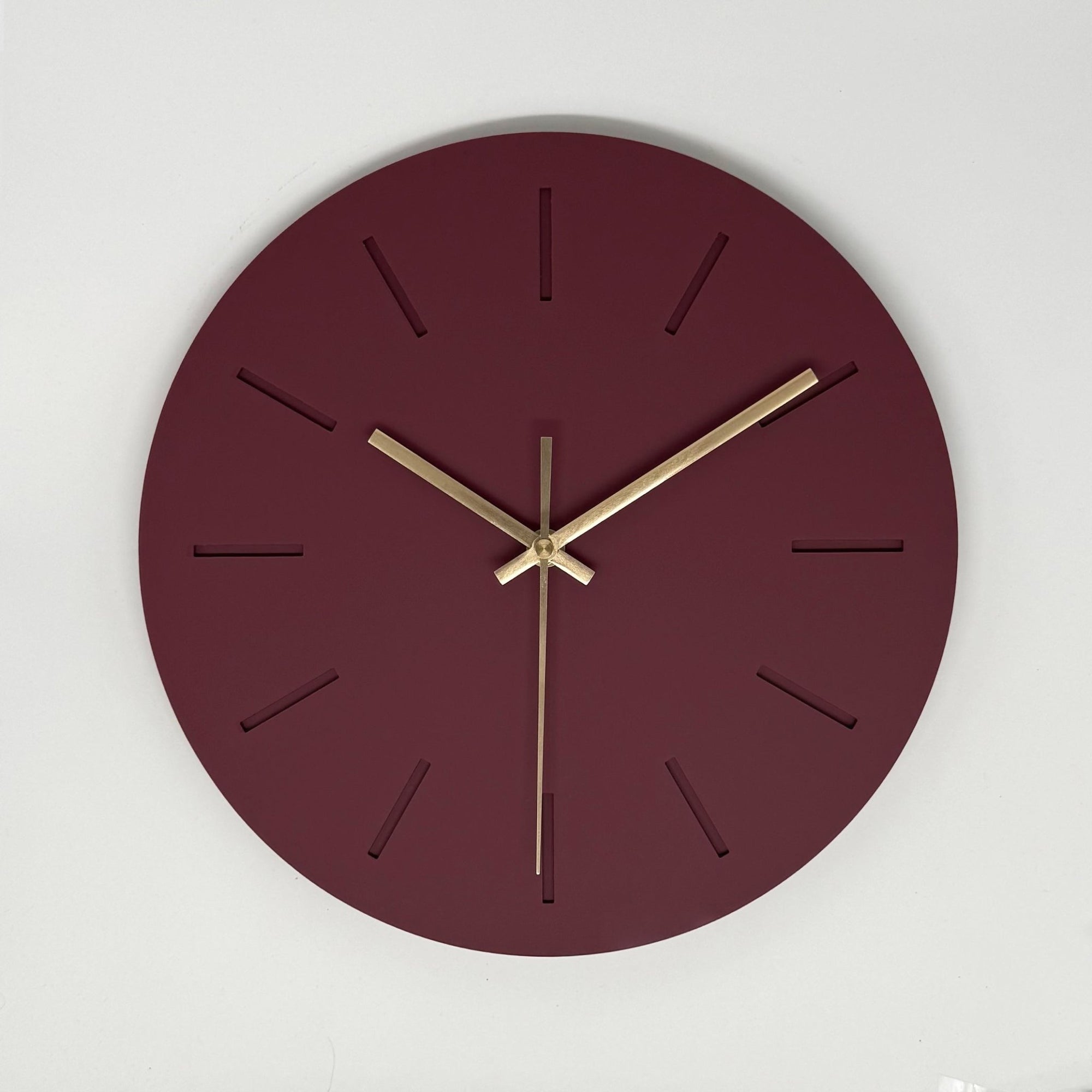 שעון קיר מעוצב לבית - דגם קו - בורדו